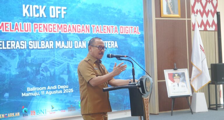 Pernyataan itu disampaikannya dalam acara Kick Off Sulbar Berdaya, yang mengusung pengembangan talenta digital untuk mempercepat kemajuan dan kesejahteraan Sulbar. Kegiatan berlangsung di Ballroom Kantor Gubernur Sulbar, Senin 11 Agustus 2025.