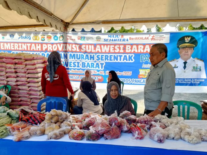 SULBARTERKINI.COM,Mamuju – Pemerintah Provinsi Sulawesi Barat melalui Dinas Ketahanan Pangan menggelar Gerakan Pangan Murah (GPM) pada Jumat, 17 Oktober 2025 di Taman Karema, Mamuju.