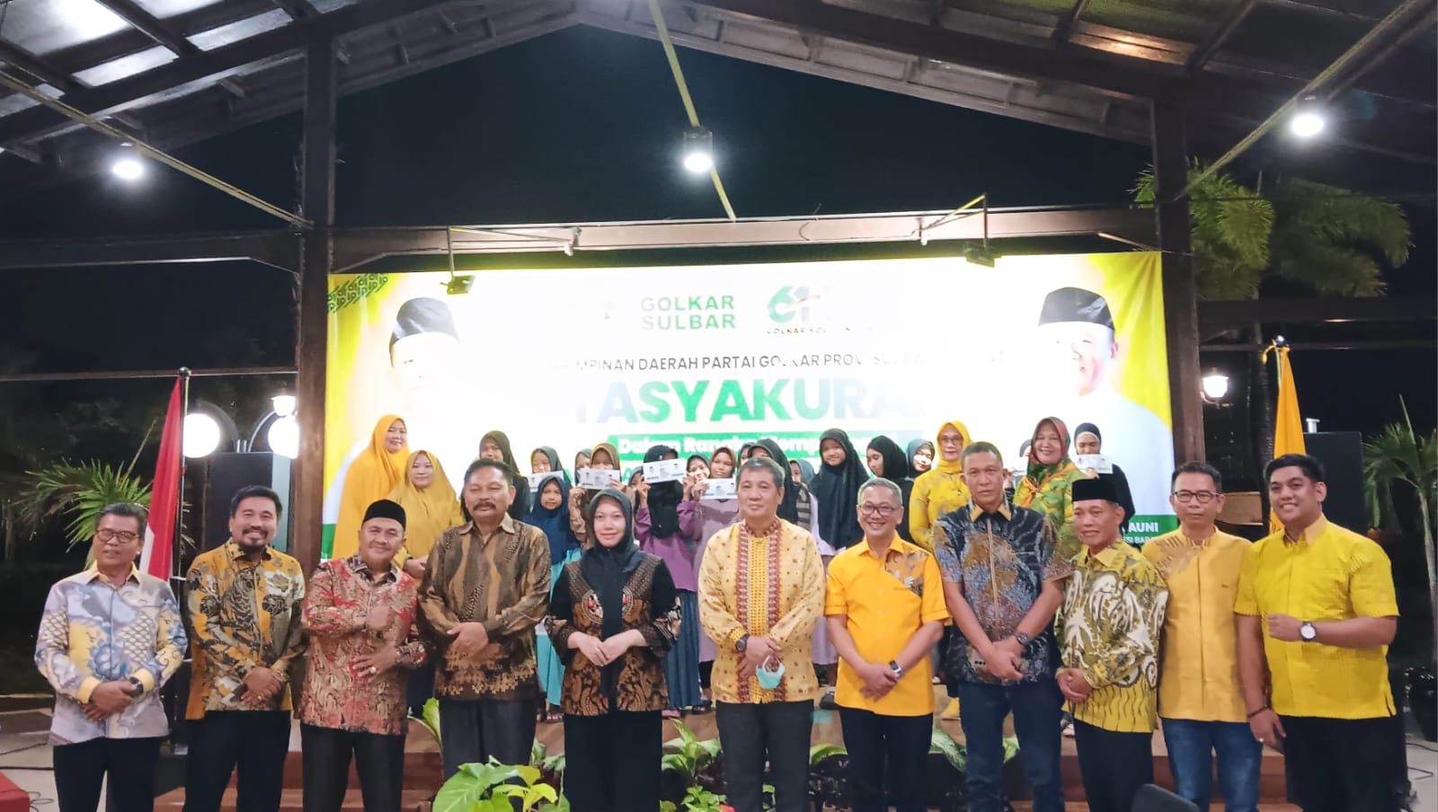 Tasyakuran dirangkaikan dengan penyerahan santunan kepada sejumlah anak santri panti asuhan, dan pemotongan tumpeng. Sebelumnya pengurus dan kader Golkar melakukan kunjungan ke panti asuhan memberi paket sembako di dua titik, serta berkunjung ke Taman Makam Pahlawan (TMP) yang berlokasi di Patti’di Mamuju.