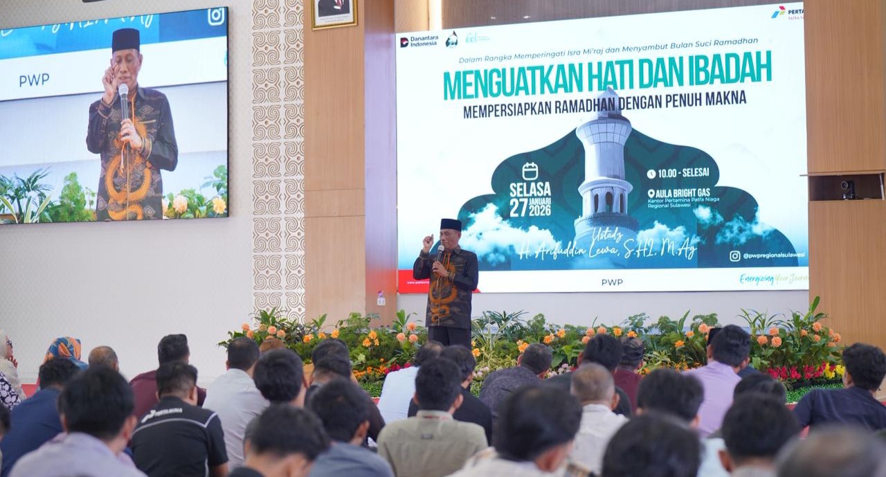 SULBARTERKINI.COM, Makassar — Dalam rangka memperingati Isra’ Mi’raj Nabi Muhammad SAW sekaligus menyambut datangnya bulan suci Ramadhan, Pertamina Patra Niaga Regional Sulawesi menggelar kegiatan bertema “Menguatkan Hati dan Ibadah, Mempersiapkan Ramadhan dengan Penuh Makna”. Kegiatan ini berlangsung di Aula Bright Gas, Kantor Pertamina Patra Niaga Regional Sulawesi.