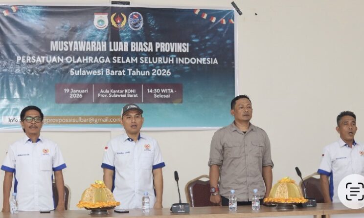 SULBARTERKINI.COM,MAMUJU–Persatuan Olahraga Selam Seluruh Indonesia (POSSI) Sulawesi Barat, mengelar Musyawarah Luar Biasa Provinsi (Muslubprov) yang dilaksanakan di Aula Komite Olahraga Nasional Indonesia (KONI) Sulawesi Barat, Senin, (19/1/2026)